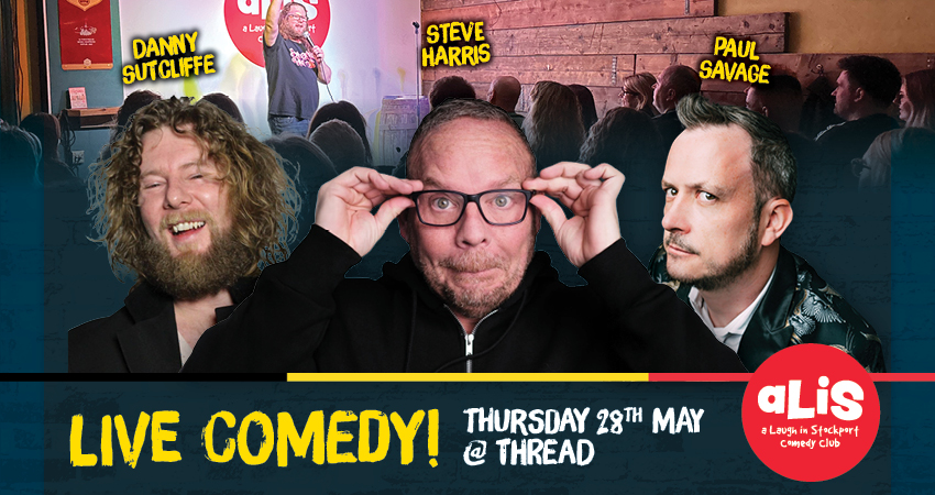 Live stand-up comedy in the heart of Stockport, with Steve Harris, Paul Savage, TBC, and Danny Sutcliffe (MC)